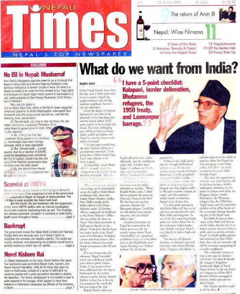 In the following week’s issue, NT #1 (19-25 July, 2000), editor Kunda Dixit answered an implicit question that many were asking: why this weekly, now, and why in English? Noting that 1,300 newspapers were currently registered in Nepal, Dixit made an impassioned case for the relevance of an English-language weekly, arguing that the Nepali Times would 'take the concerns of those who matter to those who chatter', and do so by talking 'about us in a language that they understand'.