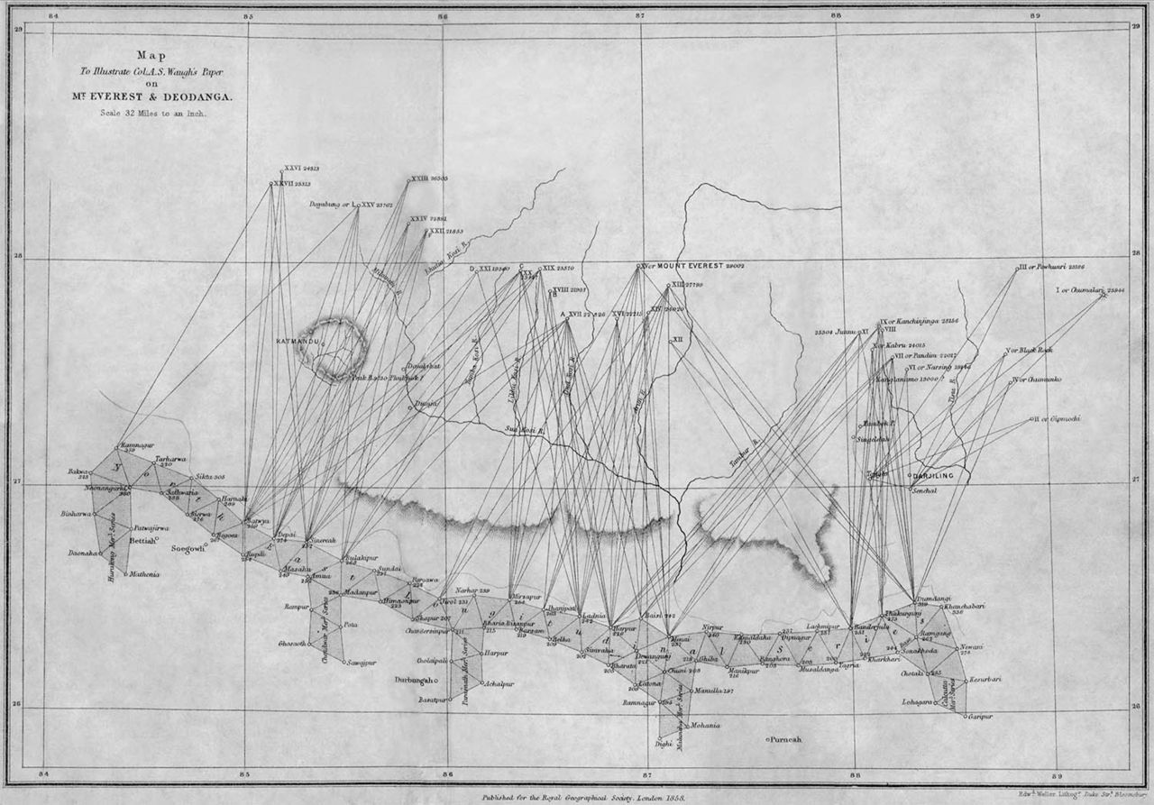 The geographer and Surveyor General George Everest was nicely retired back in England when Andrew Waugh of the Great Trigonometric Survey of India named the highest peak after him. Without access to Nepal, the Survey team had done their triangulations from the plains of Bihar and decided that the mountain designated ‘Peak XV’ was the tallest of them all.