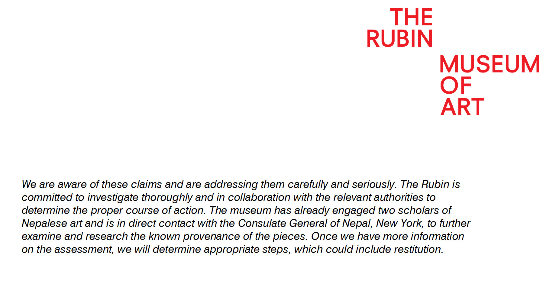 The Campaign has informed the Nepal consulate in New York about the objects in possession of The Rubin, and says it will start working immediately to facilitate the restitution of these and other antiquities.