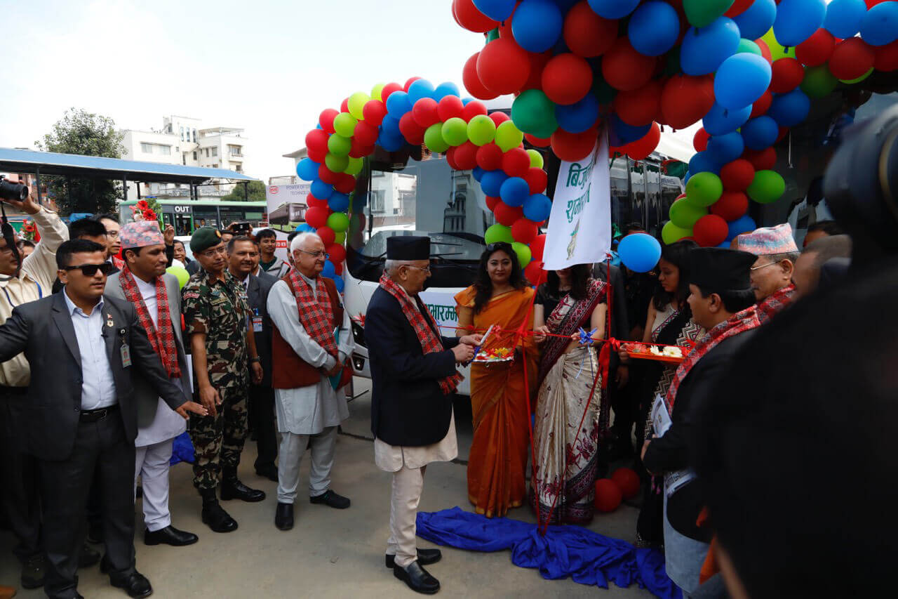 Inaugurating the first five electric buses inducted by Sajha Yatayat on Tuesday, PM Oli also said that Nepal will reduce its dependence on fossil fuel by half by 2050.