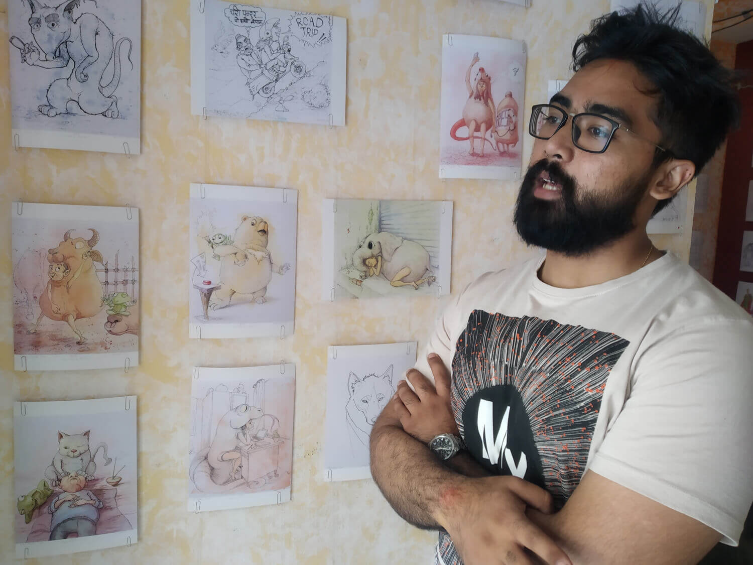 Initially, as an experiment, he gave himself a 30 day challenge. Every day, he would take a piece of paper and work with different painting materials: pen, brush, ink, crayons, pencil colours, and posted the sketches on his social media.