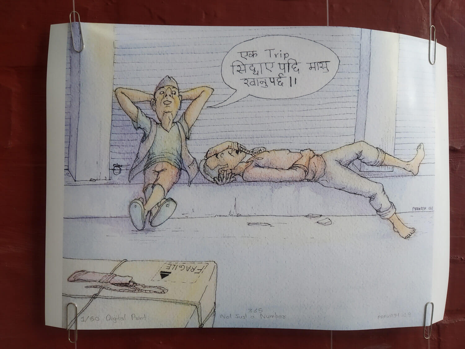 After Ranjit worked on his daily sketches for more than a year, he stopped, since it helped him deal with his inner demons and decided to exhibit and sell originals. "Maybe I will try other mediums, or maybe I will devote more time on a single piece unlike now," says Ranjit, "this is not just a job, it is therapy."