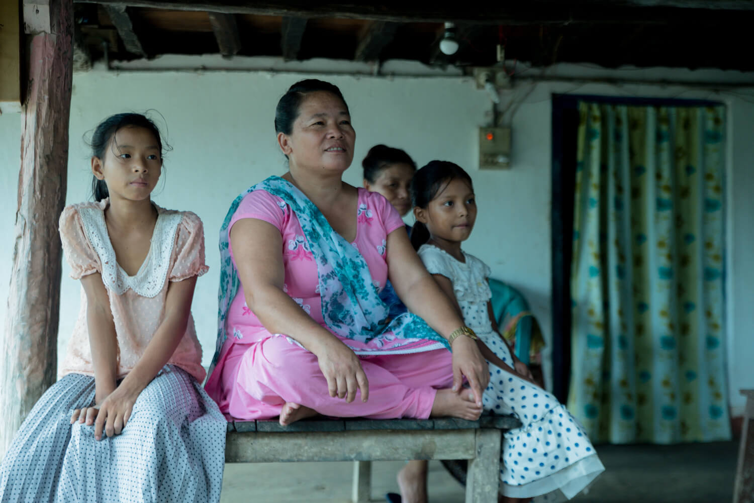 Children are playing outside. One of the neighbours, a wife of an Indian Gorkha soldier, comes to visit. Bhim shows family photos and his Indian military medals, while Sonika is attentive and ensures visitors are well fed and looked after.