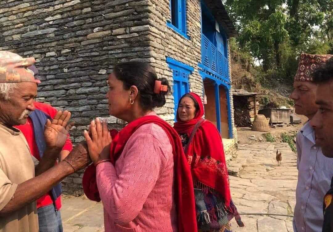 The photo of Gau Bahadur touching Mina’s feet has been widely shared on Nepal’s social media, accompanied by many messages of support and best wishes for her candidacy.
