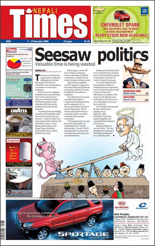 Ten years ago this week in issue #424 of 7-14 November 2008, the Nepali Times editorial was once more giving unsolicited advice to politicians to get their act together. It would take another eight years for them to do so, and finally promulgated a flawed constitution. Here is what the editorial said: