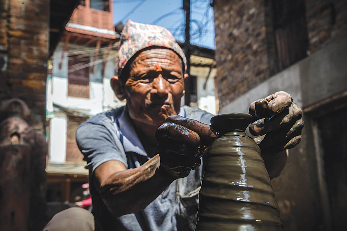 Nhuchhe Ram Prajapati sources his clay from Harisiddhi, from outside the Valley, or from someone who is building a tall house that need foundations deep enough to reach the black clay layer.