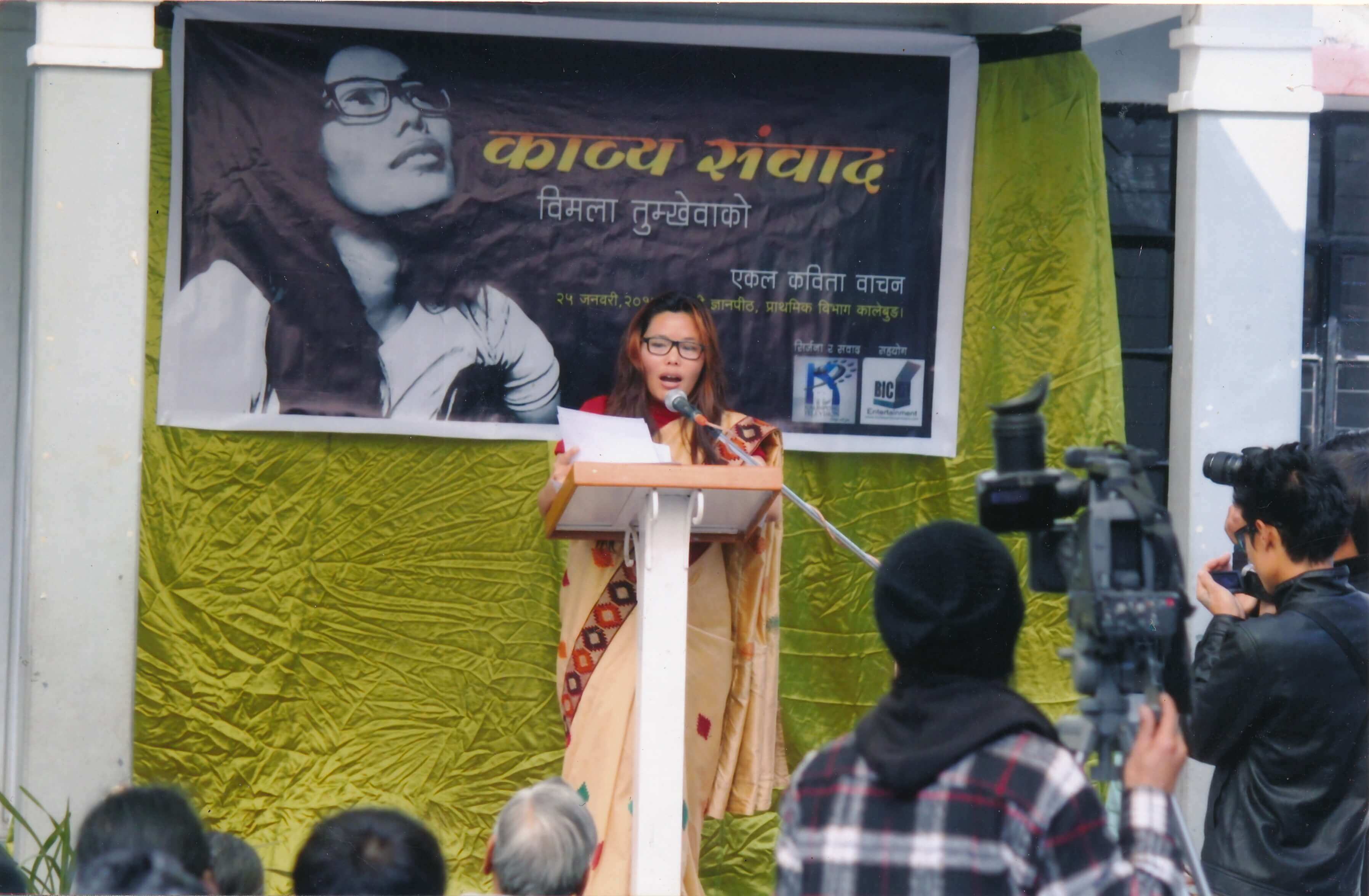 B: Absolutely. In 1999 in Damak, Acharya Prabha ran an event called Kothe Sahityik Yatra. Writers and poets from Jhapa, Morang, Sunsari would meet every first Saturday of the month. After I went there, I was suddenly connected to a whole new world of writers. I would meet them, and at that time we had a PCO satellite phone in Pathri and I would give them the PCO number. These writers and organisers would call to ask me to attend different poetry events, and it cost me Rs12 per minute. Also, the phone people charged for the 3 minutes it took for them to inform me to come to the telephone booth!