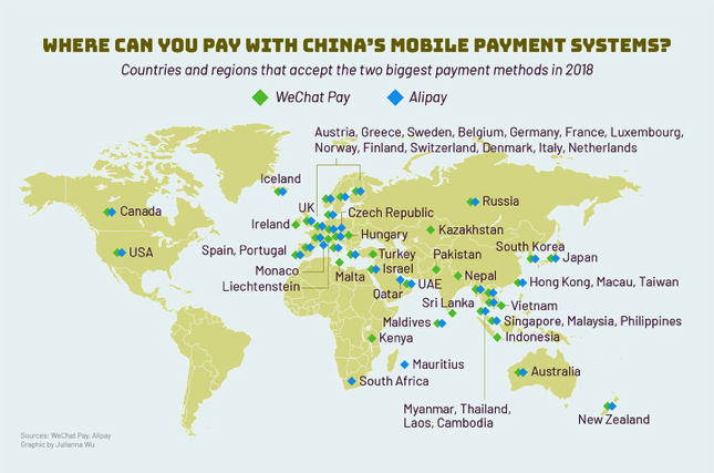 The focus of the BRI has itself changed over the past four years to encompass not just infrastructure but also a ‘Digital Silk Road’ of connectivity. As more and more Chinese investors and tourists travel abroad, the Digital Silk Road is already functioning as a new payment gateway involving Chinese digital giants like WeChat and Alipay. By not making grand promotions and sticking to its domestic consumers, these companies have simply followed Chinese travelers wherever they go (see map).