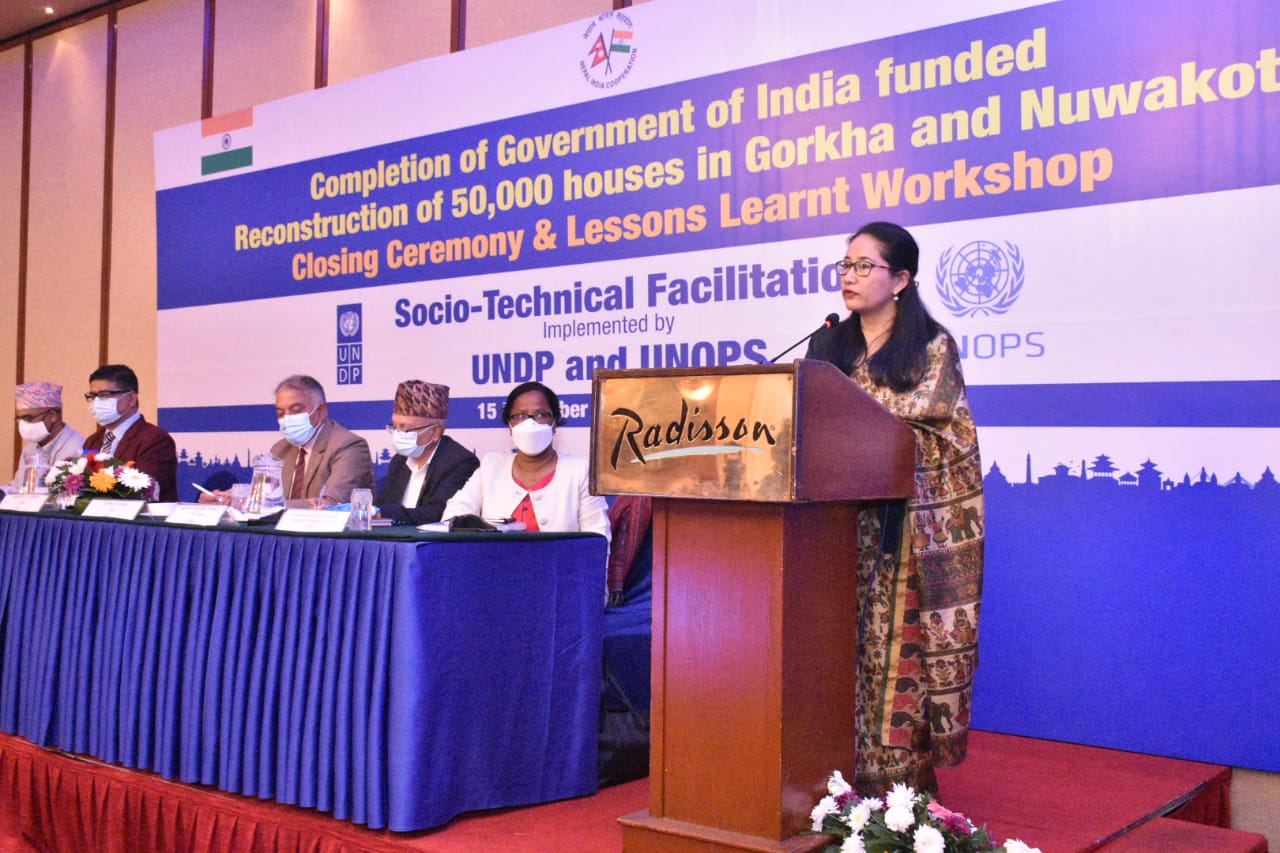 The Indian Embassy, Nepal’s National Reconstruction Authority (NRA), the UNDP and the UNOPS on 15 November hosted an event in Kathmandu marking the end of the $150 million India-funded reconstruction of 50,000 houses in the Gorkha and Nuwakot districts affected by the 2015 earthquake.