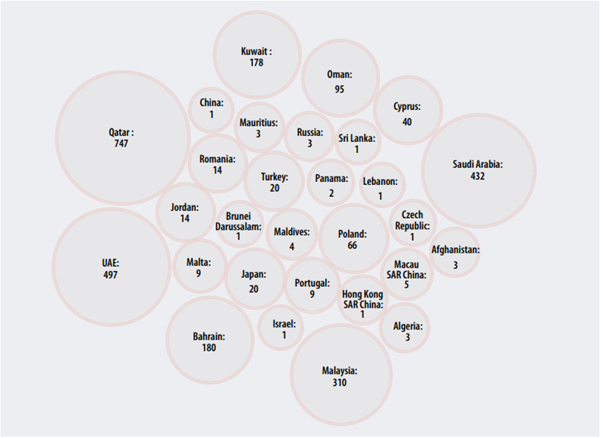 Nepalis took labour approvals to migrate to 127 countries in 2019/20, of which 94% was to the Gulf and Malaysia – most of these were intermediated by private recruiters. While 747 recruiters mobilised workers to Qatar and 497 to the UAE, the number of recruiters that placed Nepali workers to Poland, Portugal, Romania and Malta were only 66, 9, 14, and 9 respectively. (See chart)