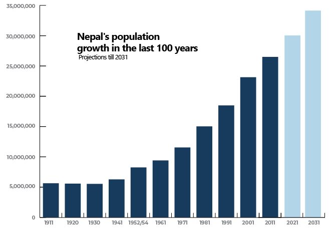 By this time, Nepal’s population had surpassed the 26 million mark, a 370% increase in a century. A century after the first census, therefore, Nepal’s 2011 census served as numeric and demographic documentation of Nepal’s historic political and socio-cultural changes.