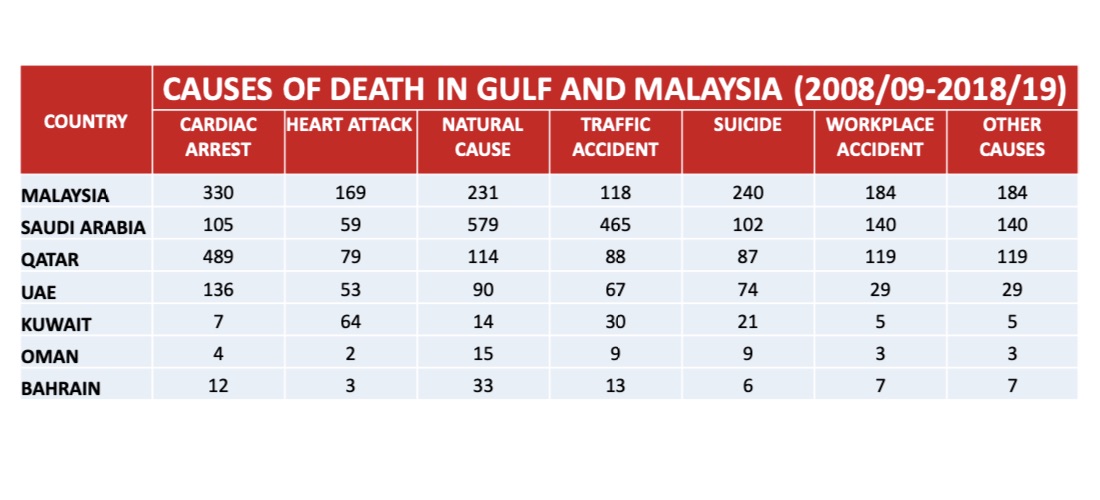 The lack of proper investigations into migrant deaths has also been criticised. One major hurdle is that there is no publicly available data on fatalities. Statistics are also not disaggregated by age and nature of work, which limits a clear understanding of the issue.