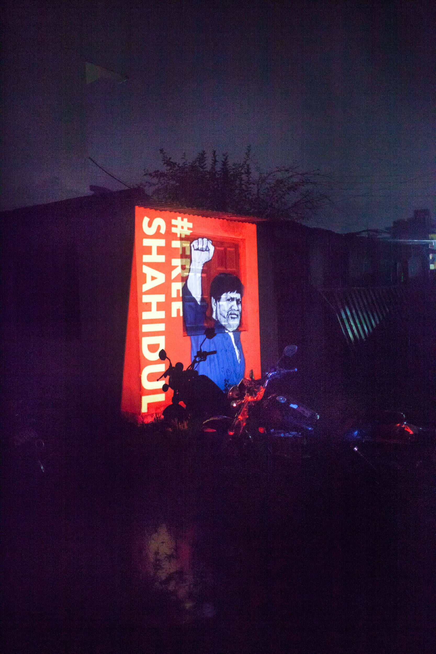 As Kathmandu welcomes several heads of states and governments for the fourth summit of the Bay of Bengal Initiative for Multi-Sectoral Technical and Economic Cooperation (BIMSTEC) on Thursday and Friday, the city's walls and streets have been lit up with projected images and slogans calling for the release of noted Bangaldeshi photographer Shahidul Alam. The aim is to draw the attention of Bangladesh Prime Minister Sheikh Hasina who arrives on Wednesday to attend the Summit.