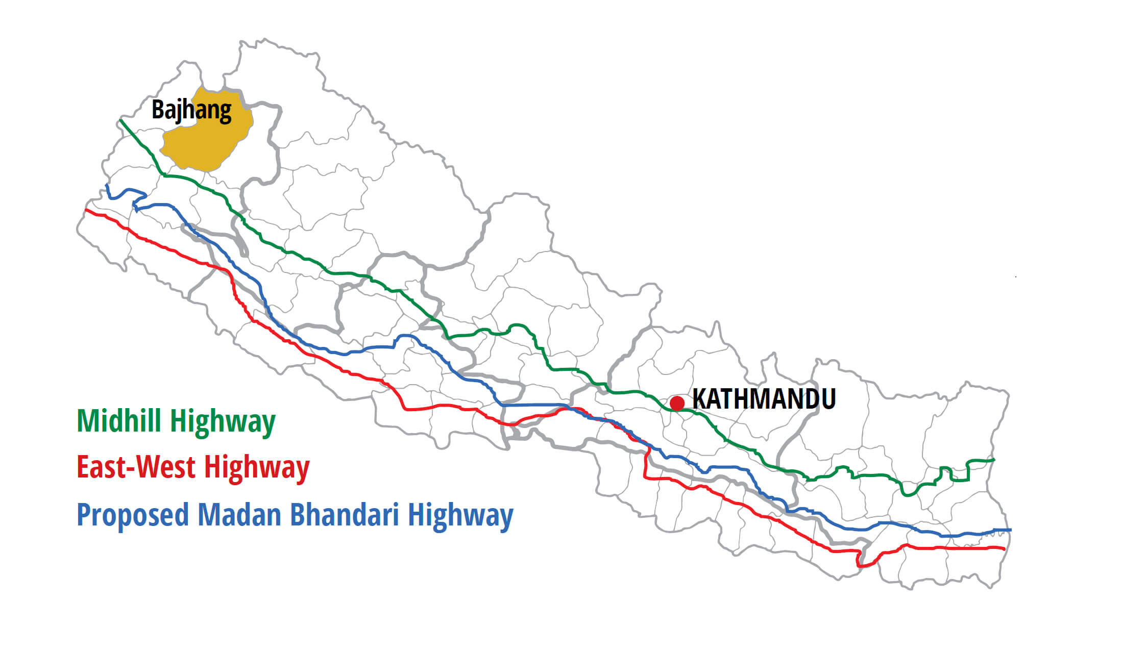 When asked, spokesperson Rajendra Sharma of the Ministry of Physical Planning and Transportation said parts of the new highway were already in existence, and the Madan Bhandrai Highway would just connect the missing bits. He also said the region served by the road was rich in limestone deposits, and would serve existing and future cement factories.