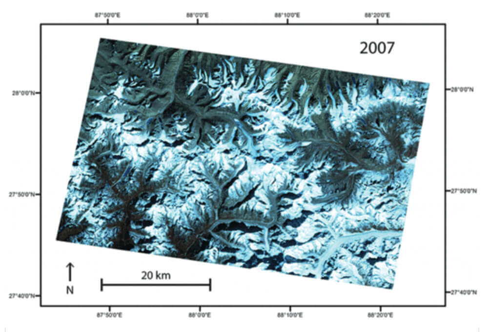 The satellite data spans India, China, Nepal and Bhutan. Each of those countries, in addition to Afghanistan, Bangladesh, Myanmar and Pakistan, are members of the Kathmandu-based International Centre for Integrated Mountain Development (ICIMOD), which has been studying the changes now underway in mountain glaciers.