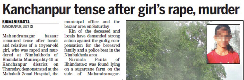 The rape and murder of a 13-year-old girl in Kanchanpur last week was the latest in a series of crimes nationwide reported daily and with depressing regularity in the media.
