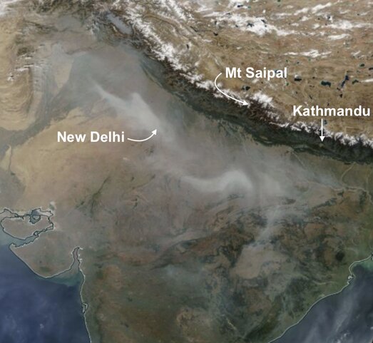 [caption id="" align="alignright" width="523"] A NASA satellite image taken at noon on Monday, 9 November 2020 showing smoke from crop residue fires in north India being blown towards Nepal.