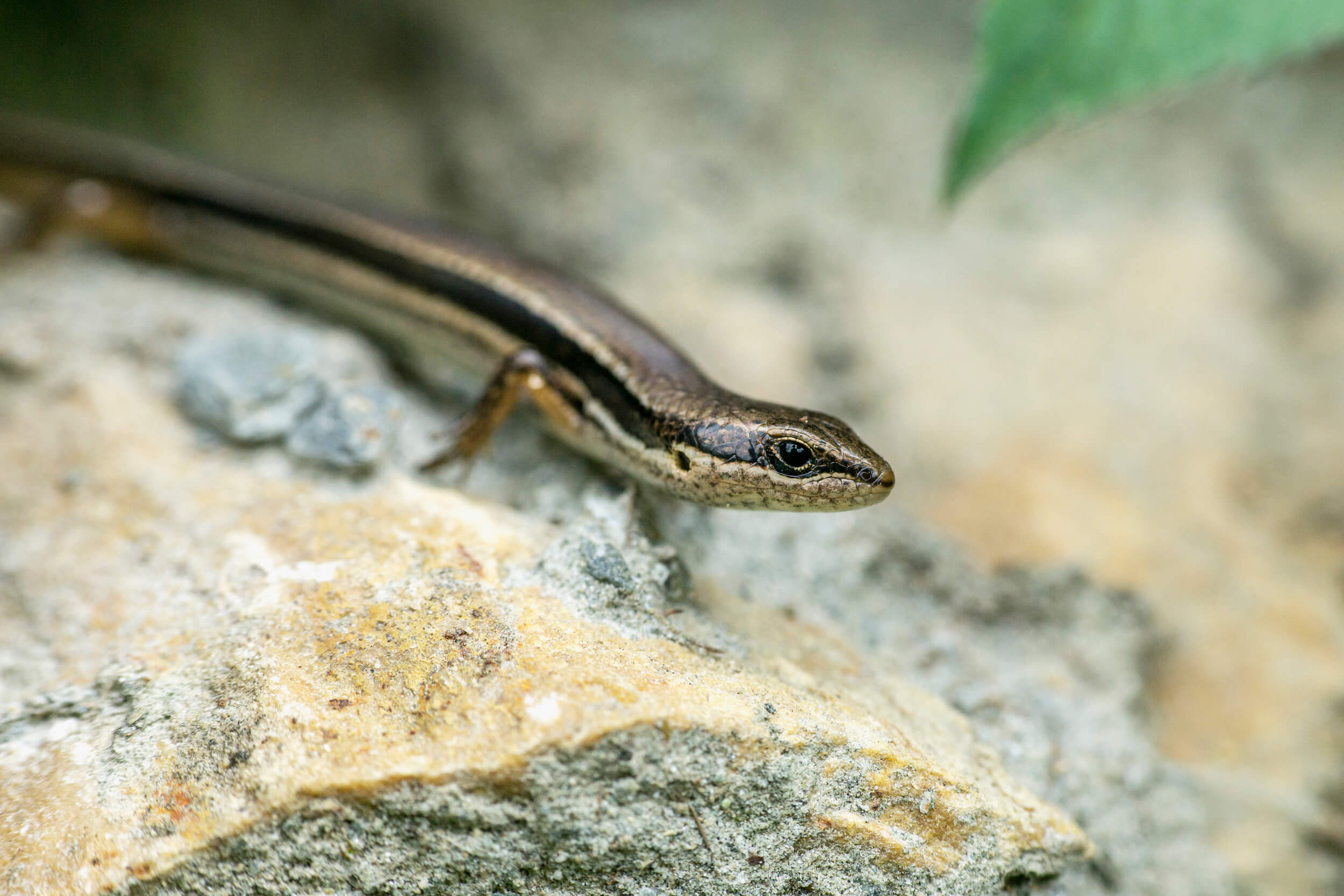 The male Garden Lizards appear in the early morning sun to greet the sun, and showing off their crimson head and black throats to attract females who seem to go for that kind of pigment. A ground Skink pokes its body out from a crack in the rock wall to bask in the warm sun, and I take a closeup look at the guy since I had not seen him in such proximity in my location.