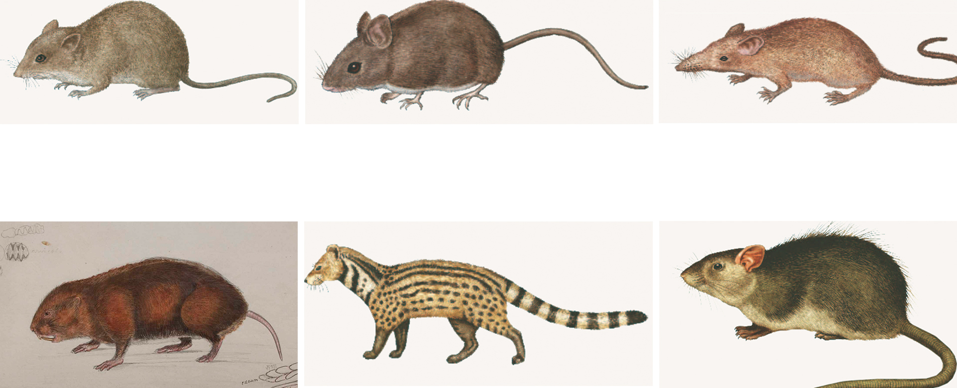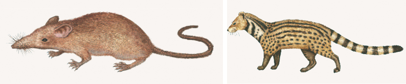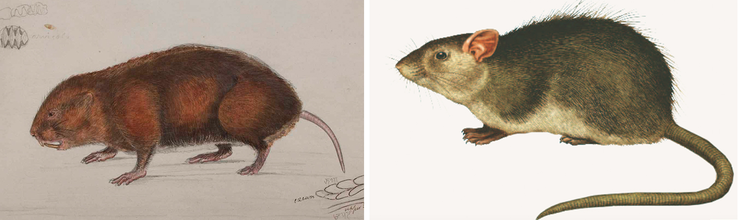 “The bamboo rat lives underground so he has tiny eyes. Stocky. Short tail. Reddish colour.”