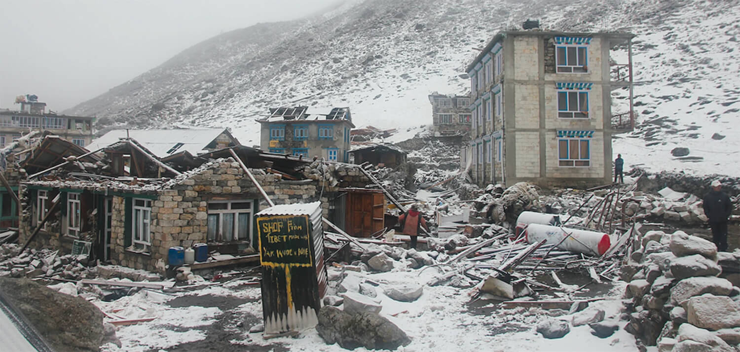 He staggered out into the balcony, down the stairs and outside. All around him, stone houses were crumbling in clouds of dust. Then there was another more ominous roar from the cloud-covered slopes of Langtang Lirung directly above the town.
