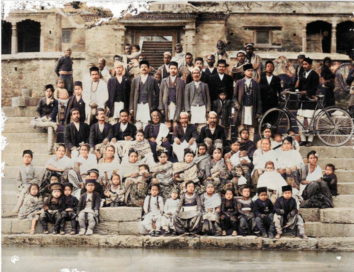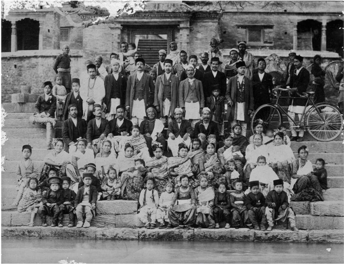 The Maskey clan poses for a group photograph at Gujeswari in 1927. Photo: Narendra Lal Maskey Collection / Nepal Picture Library