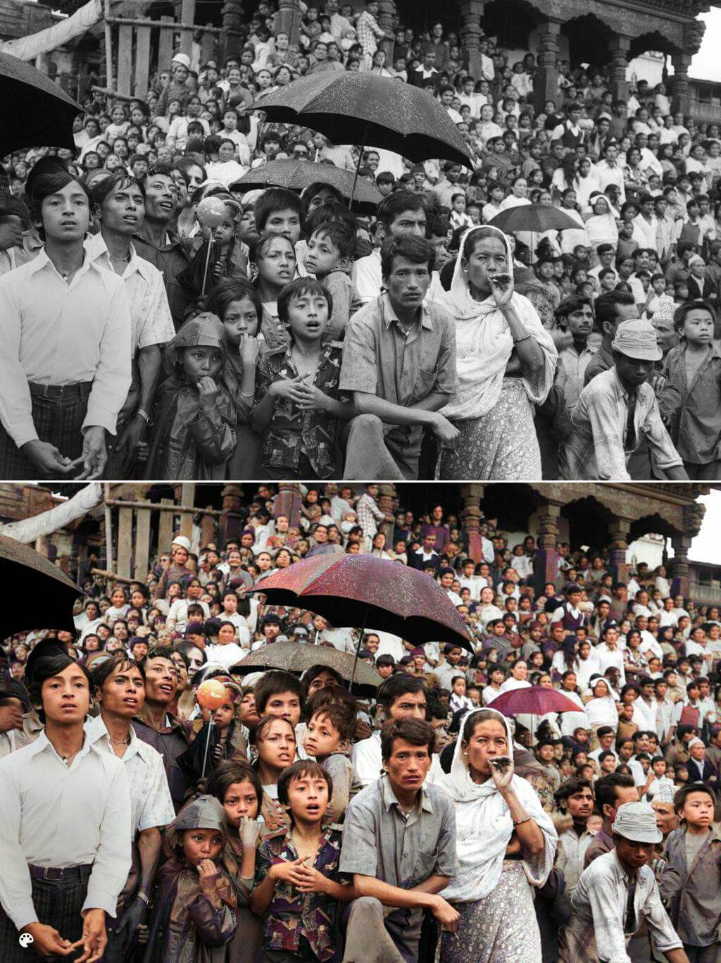 It was not until the 1950s that the first colour photographs were introduced to Nepal, and even then the films had to be taken down to Calcutta to process and print. A debate ensued between those who felt black and white was artistic, and many who found photographs in full colour much more accurate and realistic.