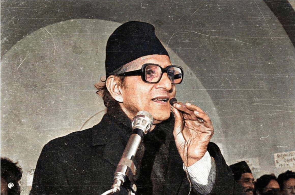 BP Koirala giving a speech at Khula Manch in 1980. Original: Unknown / Madam Puraskar Pustakalaya