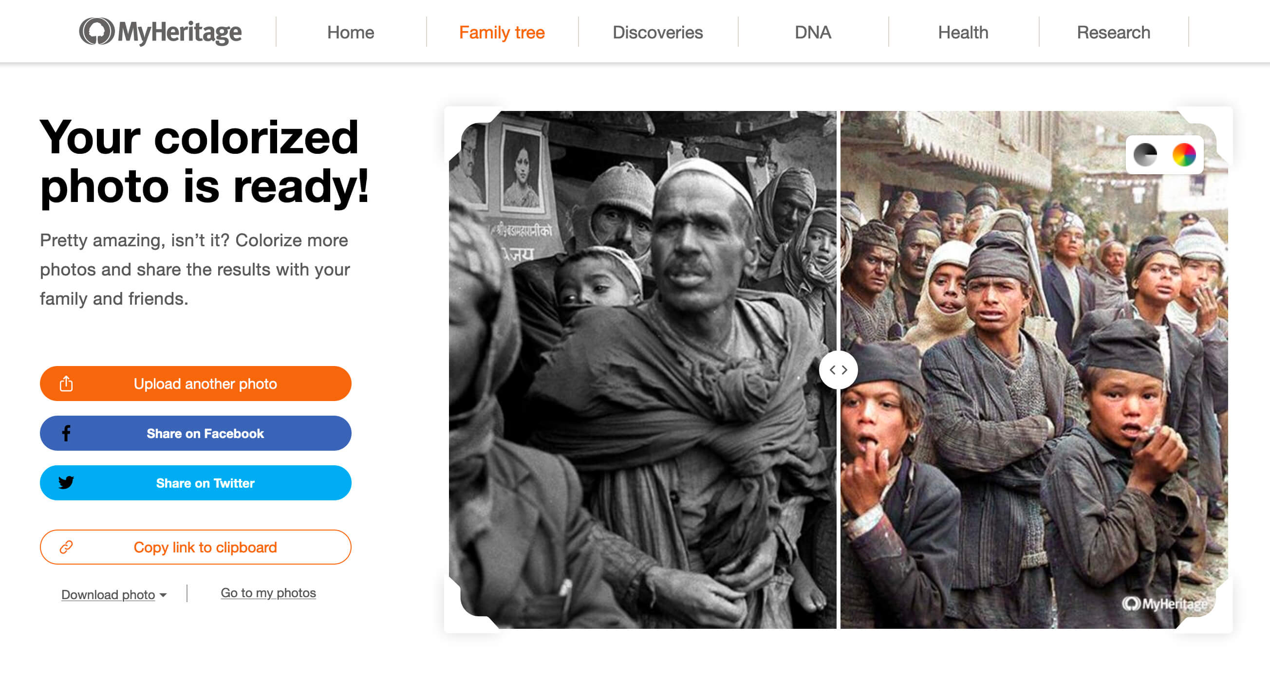 The steps were fairly simple: the old prints had to be scanned, uploaded into the software which then simply worked its magic. Filling in the colour and texture to faces, clothing and landscapes to faded old sepia images restored their vibrancy and immediacy.