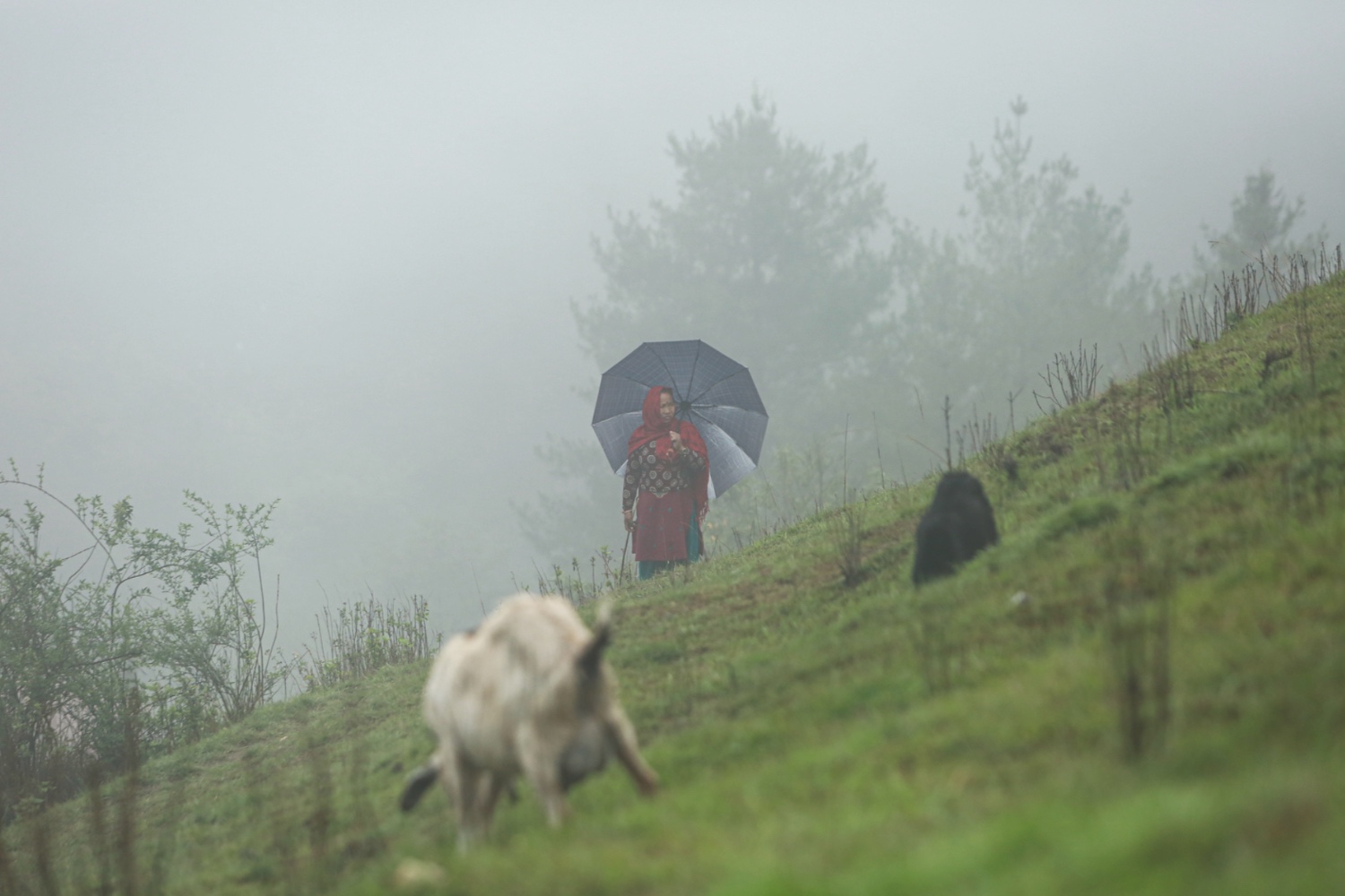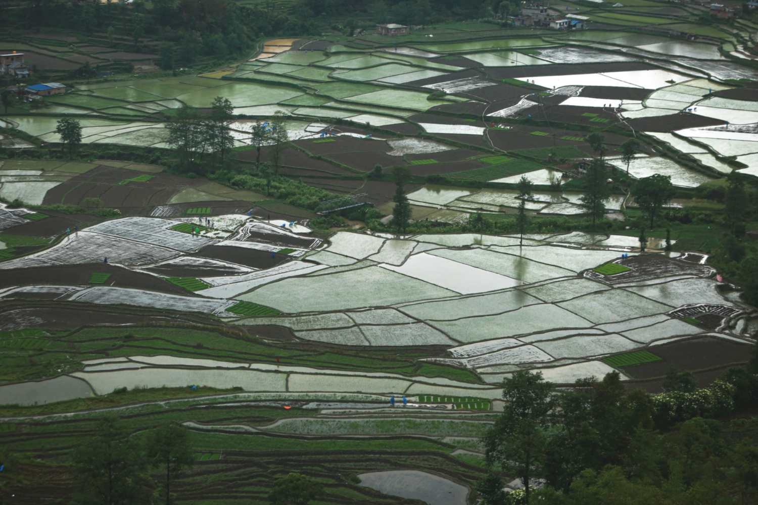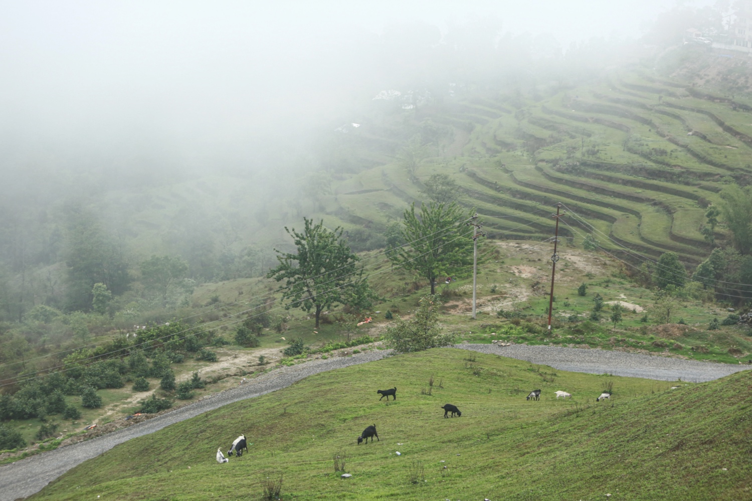 Meanwhile, the locals of Nagarkot sit it out at home during the lockdown, watching the moist and warm up-valley wind bring up the wet mist. Some graze their goats in fallow fields bought up by tourism developers, others are knee-deep in mud, planting rice on flooded terraces.