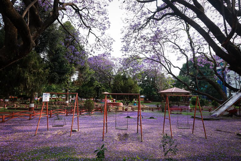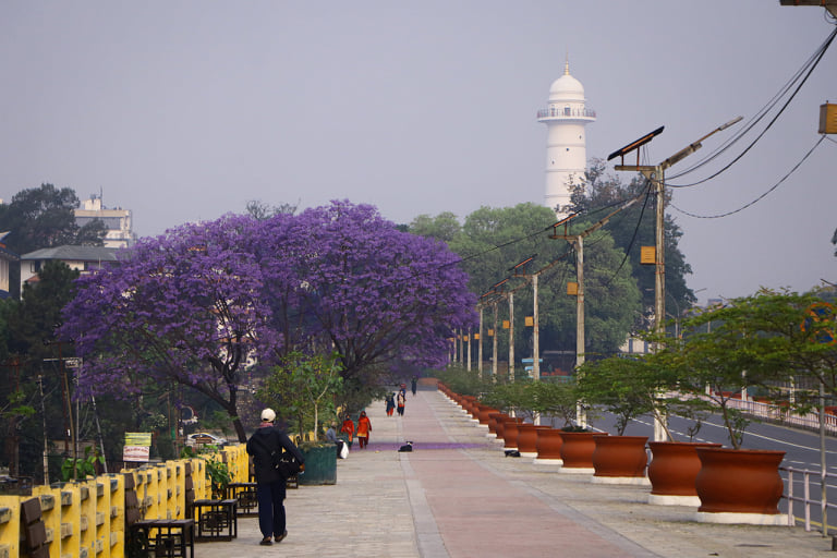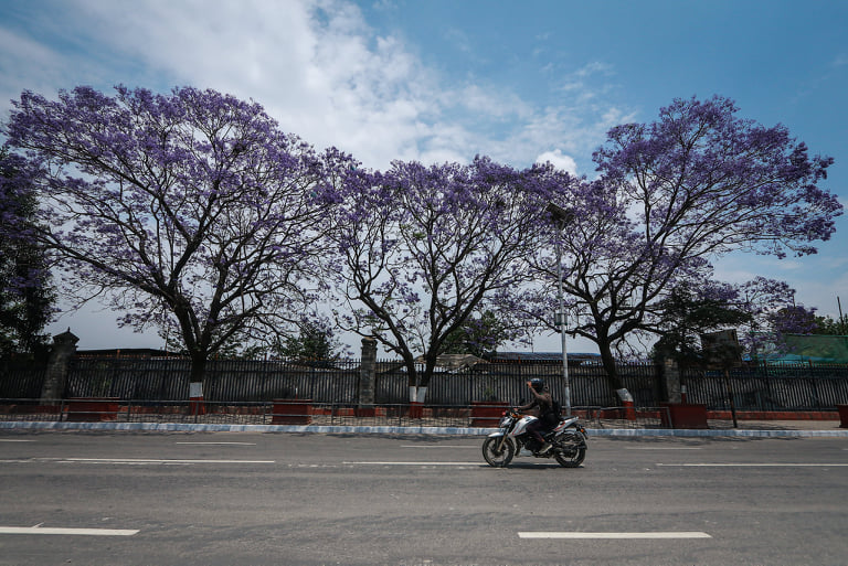 Away from the doom and gloom, locked down Kathmandu is abloom in Jacaranda, with the streets leading up to Tundikhel painted in purple.