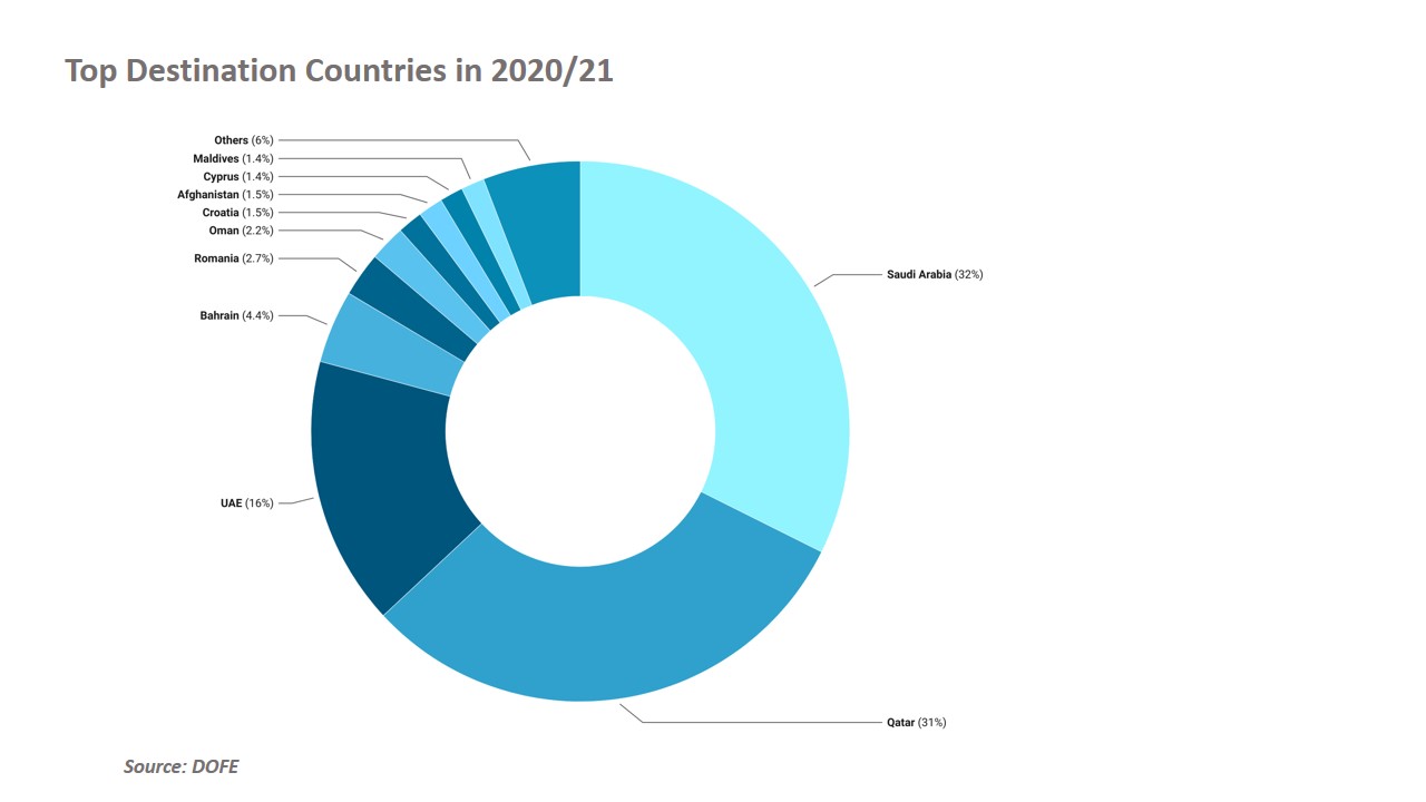 The reasons for the historic low numbers are fallout from the pandemic and continued hiring freezes and travel bans to some countries. Saudi Arabia, Qatar and the UAE accounted for 80% of labour approvals in 2020-21, while few workers went to Malaysia and Kuwait which had consistently been among top destination countries for Nepali overseas workers.
