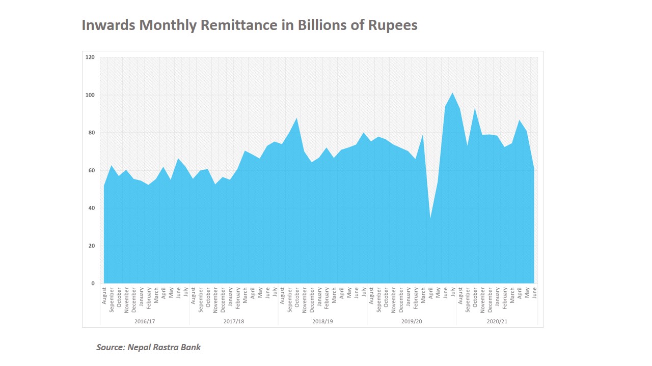 Despite all this, remittances have so far defied expectations. Nepal Rastra Bank data for the past 11 months show that remittance saw a 12.6% increase to Rs871 billion compared to 2020-21, but a 3.2% increase compared to 2019-20.