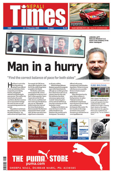 Nepali Times issue #480 of 11-17 December 2009 carried an interview on page 1 with Baburam Bhattarai, who was then vice-chair of the Maoist party. Excerpts:
