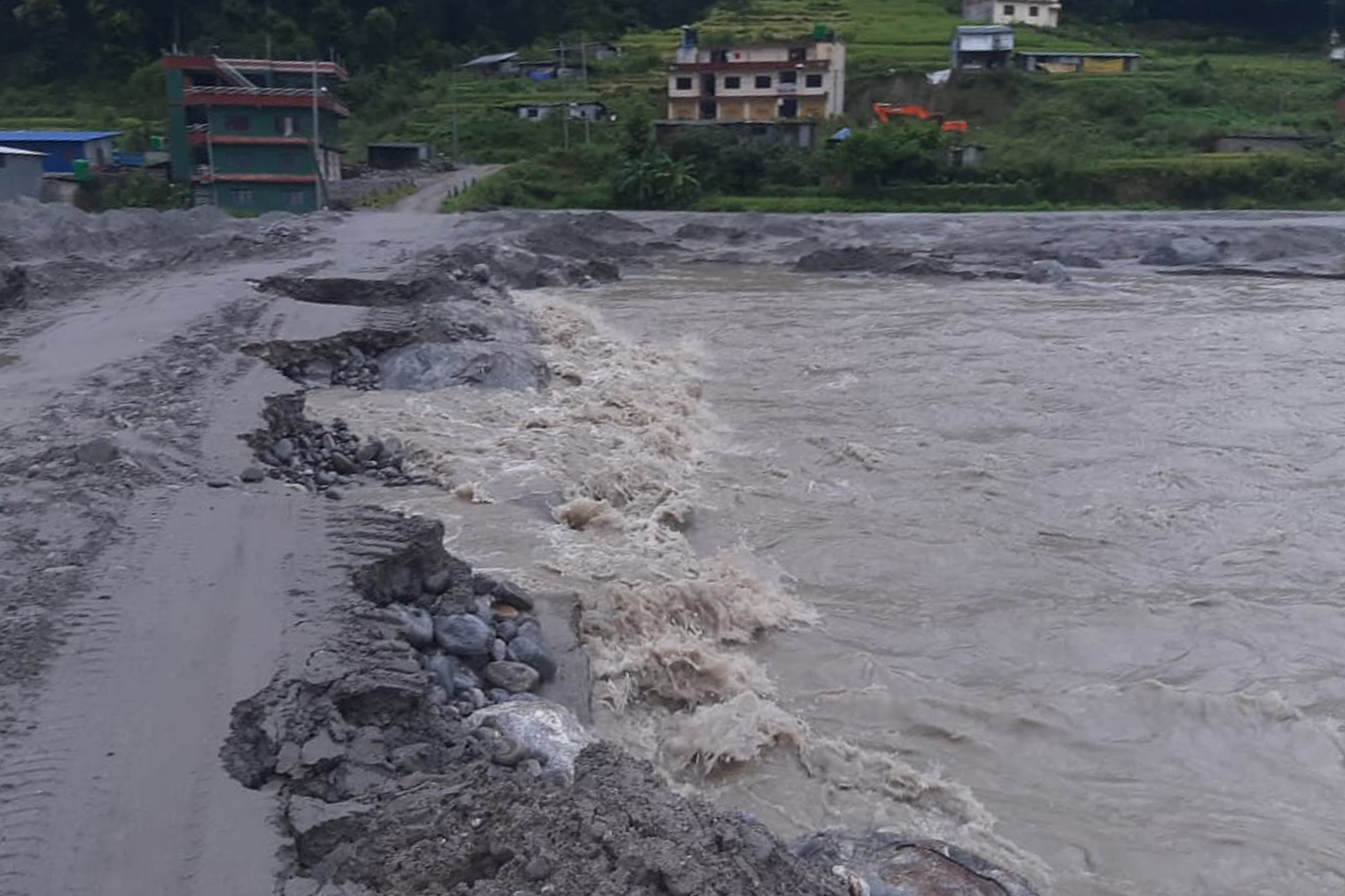 The border Mahakali River reached record-high levels on Tuesday, destroying roads and bridges. More than 24 people are feared dead in a village in Bajhang hit by a landslide. Another andslide killed two children Dharan.
