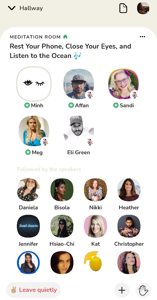 The ‘Leave quietly’ button is a crowd favourite because it allows you to leave without making a statement, unlike a WhatsApp or Viber group where everybody gets notified when you exit. The newsfeed that is your home page on the app is called your Hallway, which only shows active conversation rooms that friends who you follow are currently participating in.