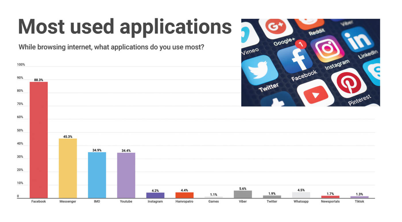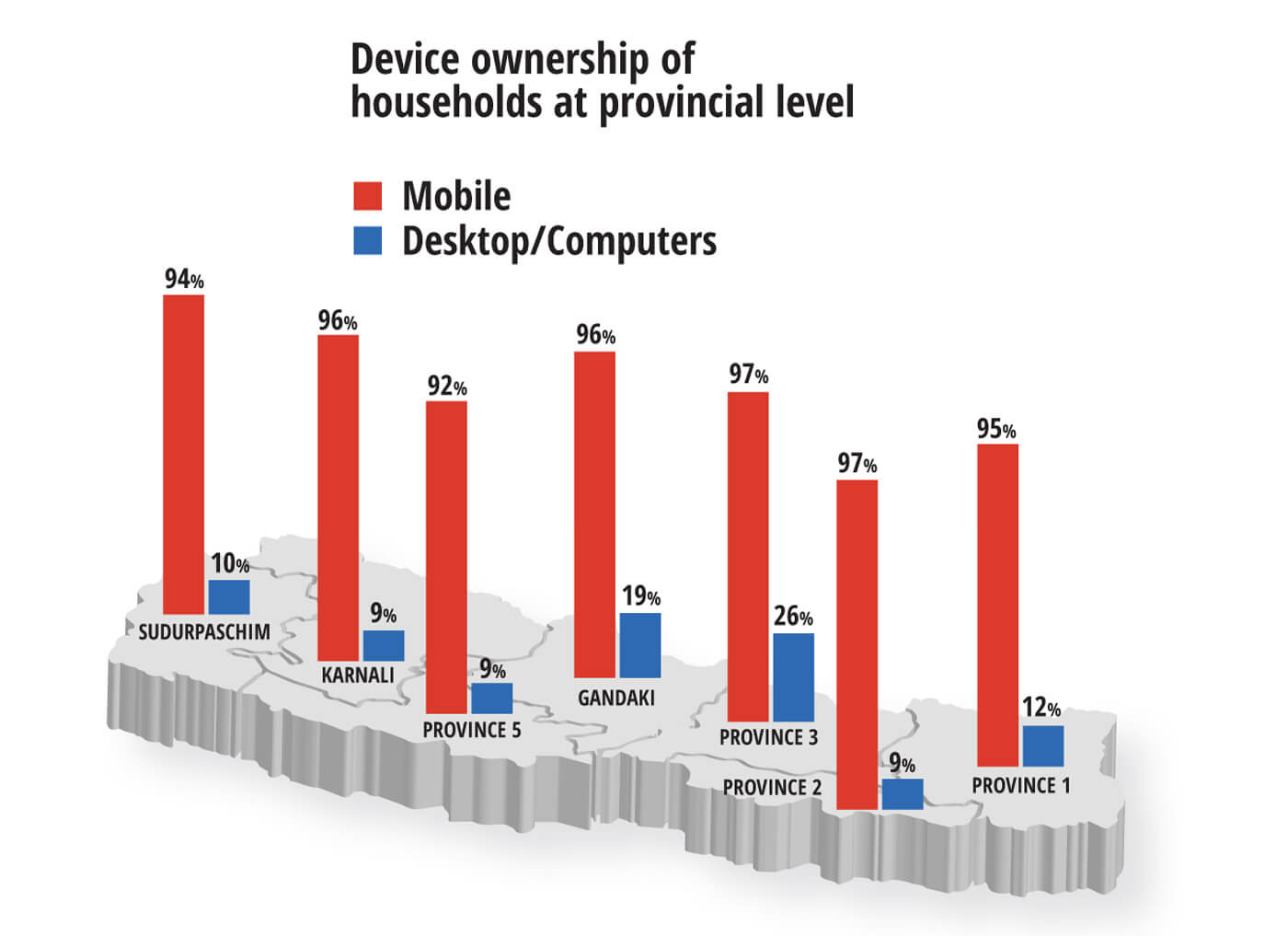 The rapid spread of mobile phones in the past five years means that more and more people are seeking instant gratification through their devices. More than 96% of households in Nepal have mobile phones, some have several, and 92% of individuals have one. Nearly all Nepalis who use the Internet do so with their smart phones (see adjoining review).