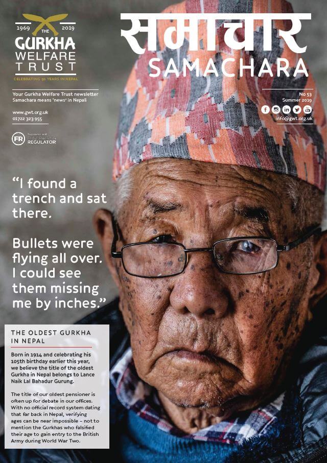 The Last Overlanders team caught up with the Gurkha Welfare Trust in Pokhara, one of the charities it is raising money for. They met 106-year-old Lal Bahadur Gurung (pictured in the cover of GWT, right) a World War 2 veteran of Libya, Egypt and the fierce battle of Monte Cassino in Italy in which 245 Nepali soldiers were killed.