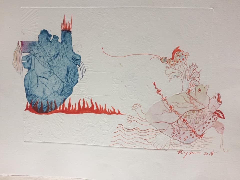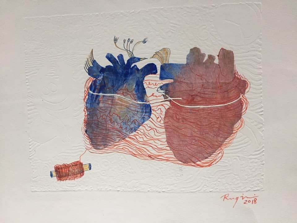 Ragini Upadhyay calls her artwork an ‘artistic diary’, reflect her life events and yearnings. Her current exhibition Love Revisited at Le Sherpa is a visual documentation of her feelings. It showcases more than a dozen of Upadhyay's prints, all centered around the theme of love, affection, separation, and the pain of love.