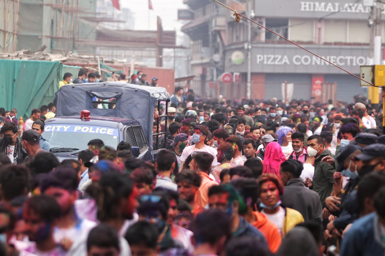 It did not look like people in Kathmandu were paying attention to either warning. Thousands of revellers thronged to Kathmandu’s Darbar Square on Sunday dancing and singing, spraying water and smearing colour on each other to celebrate the festival of colours, Phau Purnima.