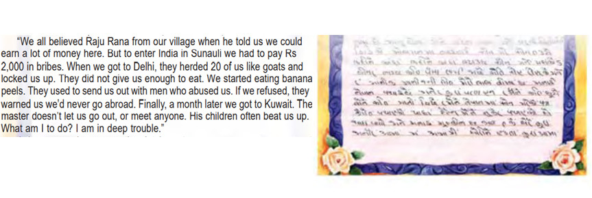 In another report in 2009, Rai points out that the ban on domestic workers has not improved the situation of women workers abroad. Contrary to the more common India route to bypass the ban, he writes about Sabina who submitted fake documents saying she will be working in a hotel so she could fly out.