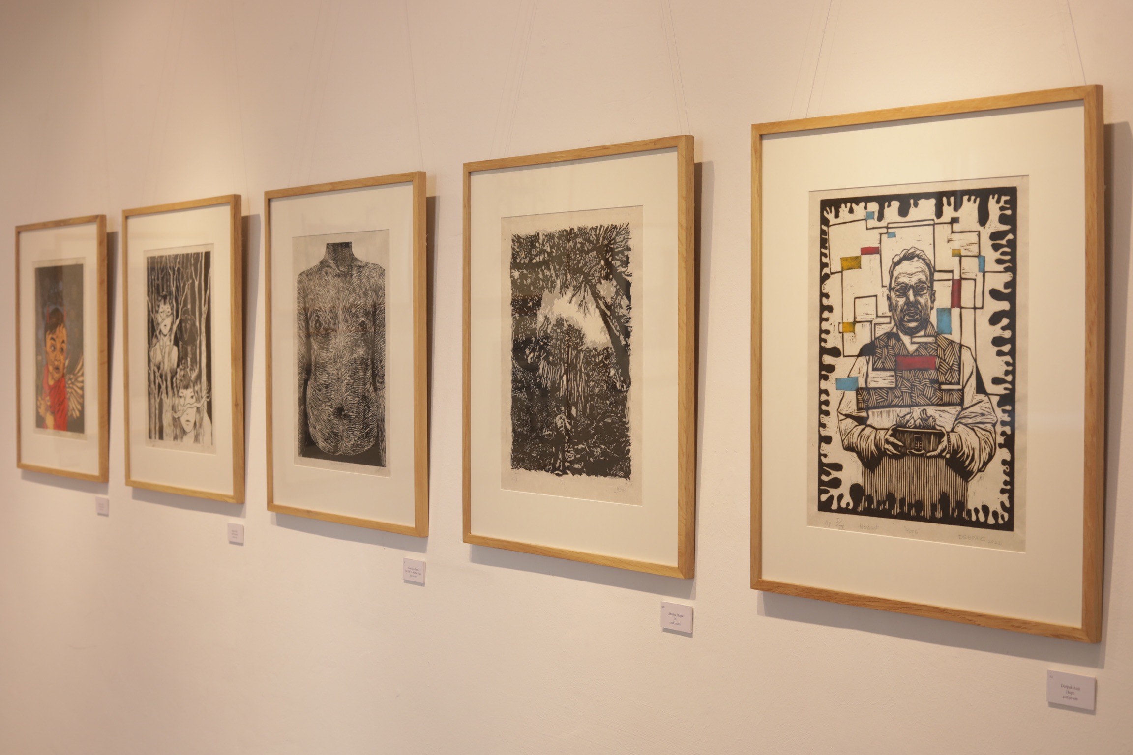 The gallery’s other space across the courtyard is currently showing a very different kind of artwork: woodcut prints. Monsoon Printmaking 2023 is the result of an online workshop organised by Bindu Space for Artists in 2022 and brings together the unique expressions of 35 multidisciplinary artists, including Anusha Thapa, Aman Maharjan, Bidhata KC, Bidhyaman Tamang, Jenney Ghale, Saurganga Darshandhari and Sujita Chaudhary.