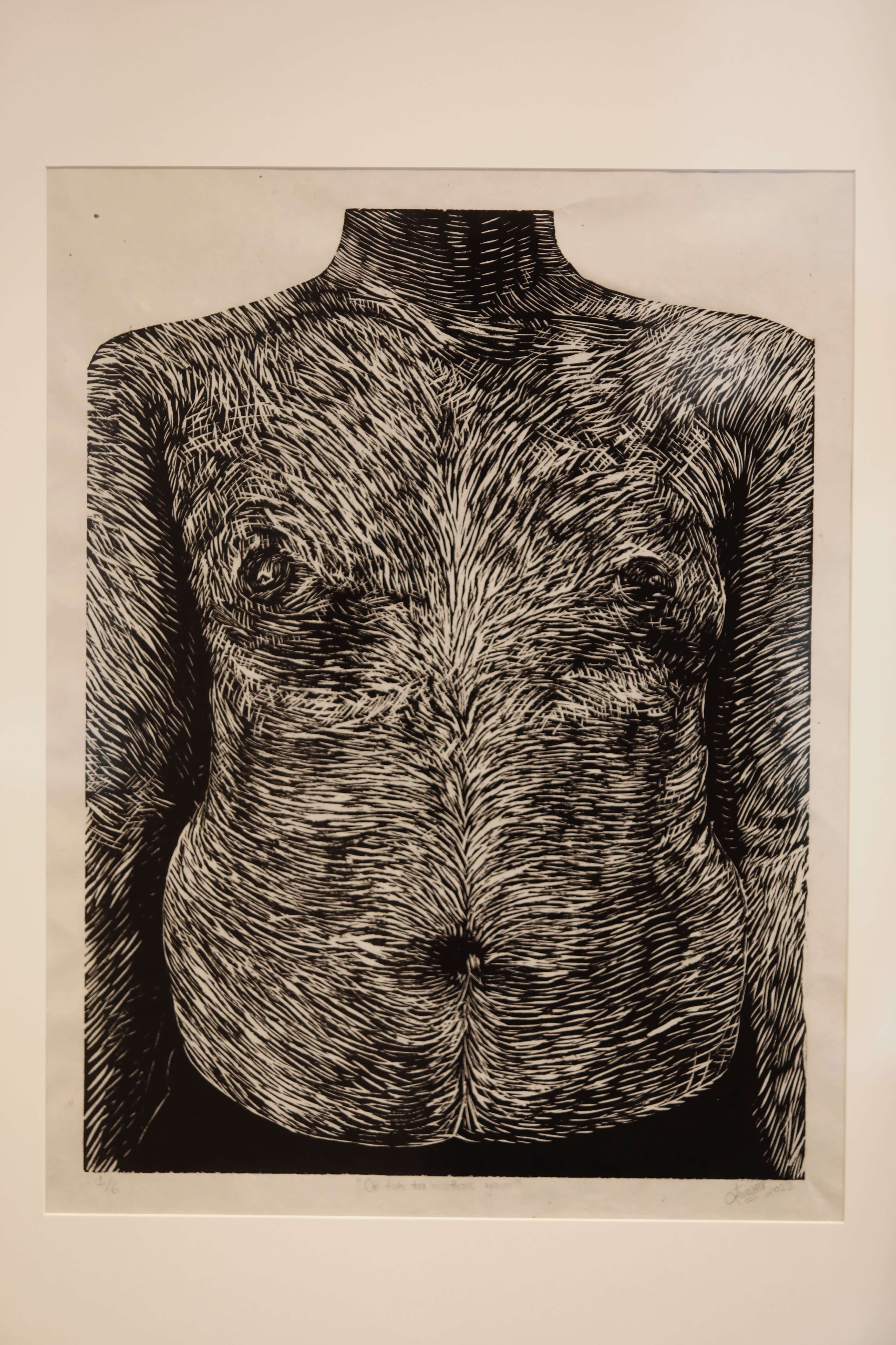 One can find a variation of tones, from monochrome, duotone to multicoloured prints. Manisha Manandhar’s ‘Lukha Duwa’ pays homage to Newa traditions and architecture while Katyani Rai’s ‘Self Portrait’ depicts a surreal landscape with trees, faces and a crow. Bidhyaman Tamang’s ‘The Older I get, The More I Learn’ shows a letterbox surrounded by cats and rats and a urinating dog while Snellen charts are strewn on the ground: a metaphor, perhaps, of miscommunication and lack of vision.