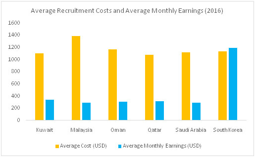 So far, there have been nine beneficiaries of this scheme. There are merits to this initiative. It recognises that workers are paying interest rates as high as 36% by borrowing from local loan sharks since they do not have access to formal channels. Or, that this cost might be prohibitively high for the poorest segments of society which may not be able to bear the costs of recruitment and benefit from migration. It also takes into account that migrant workers are rationally choosing to pay for the service provided by recruitment agencies. How else would they find a job in Dubai on their own? After all, workers heading to Korea under the government-to-government bilateral program do also end up paying $1,141, although they are guaranteed to recoup this cost in a month, unlike other destinations (see graph).
