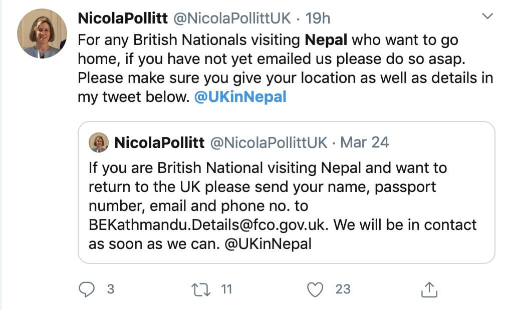 The British and Australian embassies have also issued appeals on social media asking their nationals to provide contact information for a possible evacuation in the coming days. The US embassy in Kathmandu has also reached out to Americans in Nepal saying it is working on evacuation flights, and will notify them about when it will happen.
