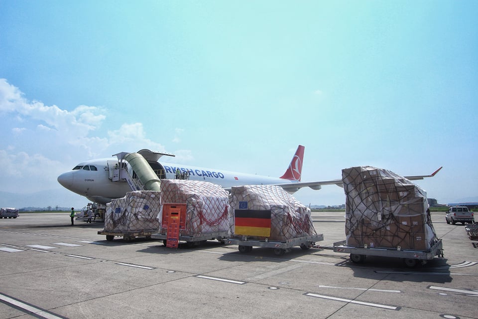 The material arrived on a Turkish Airline cargo charter that brought 62 ventilators, 27,500 FFP2 masks, 30,000 surgical masks, 100 gumboots, 200 body bags, 5 isolation centre tents, and 25,000 litres of disinfectant.