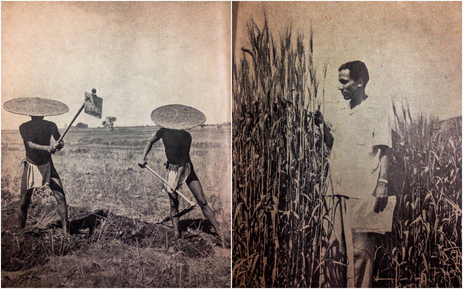 These official US photos compare traditional Tharu agriculture and modern 'scientific' agriculture. The images appeared on facing pages of a book produced in 1959 by the US government to celebrate its assistance to Chitwan and Nepal. At the time, the US ran a large resettlement program in Chitwan. American officials often wrongly saw the Chitwan Tharu as part of an outdated past. According to the implied narrative in the photos, the Chitwan valley was evolving from unproductive 'backward' traditions to super-productive, science-based civilisation along the lines of the American Midwest. The photos suggested that the Tharu had little to offer this new Nepal. That was wrong. Tharu taught migrants many things. Some of the new methods succeeded, but some often failed or brought environmental problems.