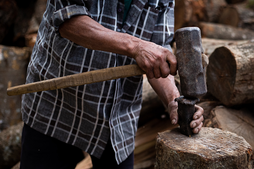 Day in and day out, in the fenced compound next to the country’s only electric crematorium, the seven staff work round the clock to ensure that the demand for wood is met. But Suka Bahadur is the only one who chops the wood by hand, the others use electric saws.