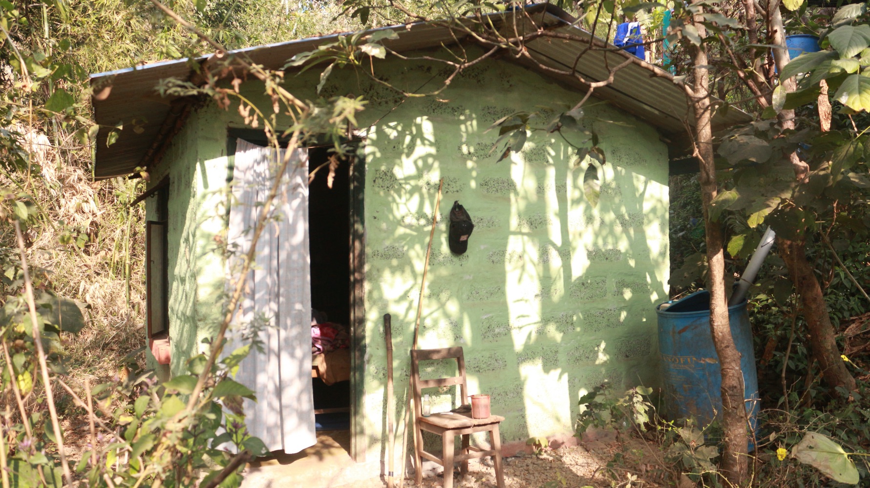 Then Putali Baje stands up, the white bag clutched in his hands, and slowly makes his way back inside his little green house.