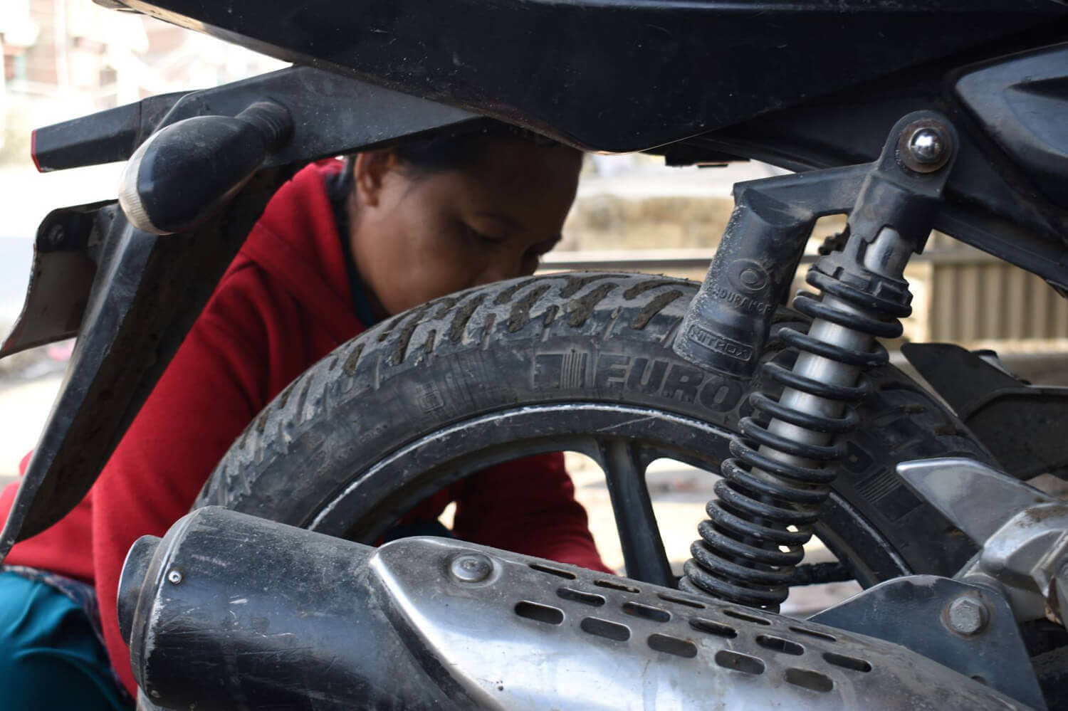 Anita Tamang was a home-maker, and was struggling to find a job to supplement her income. One day ten years ago, she enrolled in a motorcycle repair workshop at a vocational training centre in Thimi. Her instructors found she had a knack for mechanics, and encouraged her to take it up as a profession. She started interning at a repair shop, but the pay was not good and her male colleagues did not trust her skills.