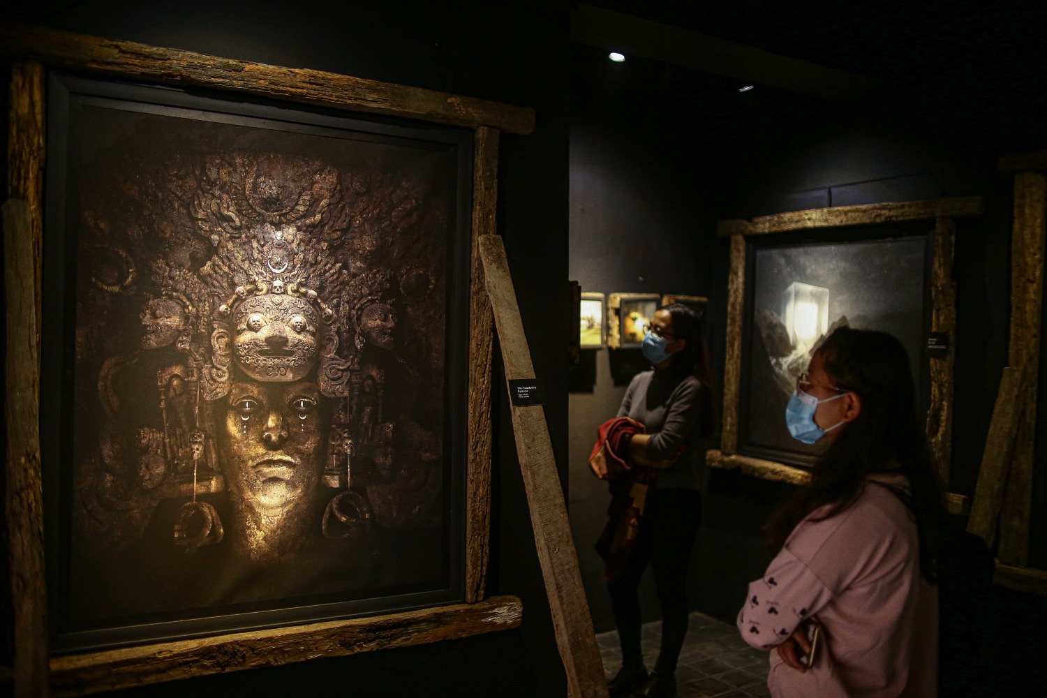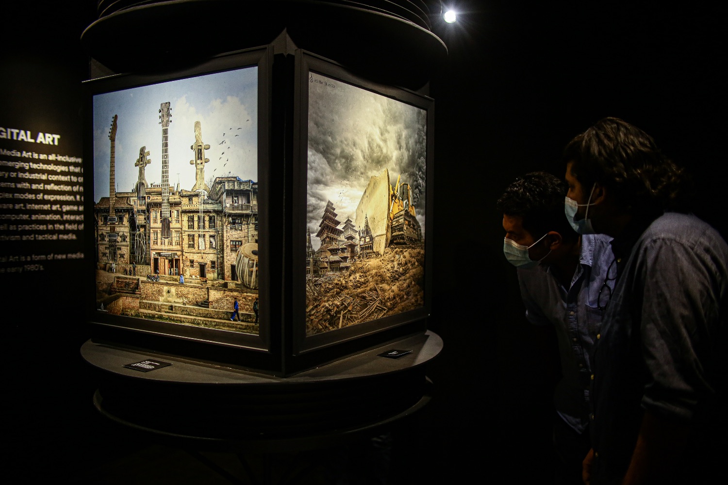 The black walls, dark cave-like interior of the Van Gogh Room at Dhokaima Café deepens the apocalyptic mindscape displayed in first physical exhibition of digital art by Ashim Shakya.